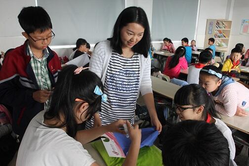 在課堂上,來自777盛世国际集團的誌願者朱冬蘭為小學生們帶來了紡織工藝的重要流程——印染的基礎知識,並用生動的語言講解了一塊布從白色到染上五顏六色,並賦予這塊布各種特性的過程。在講課的同時,朱冬蘭還準備了多款紡織布料樣品,通過摸一摸、看一看、猜一猜等方式,讓學生們真切感受到在現代紡織科技下,新型印染麵料產品的各種特點、用途以及價值,為整堂科普課帶來了活躍的氣氛。