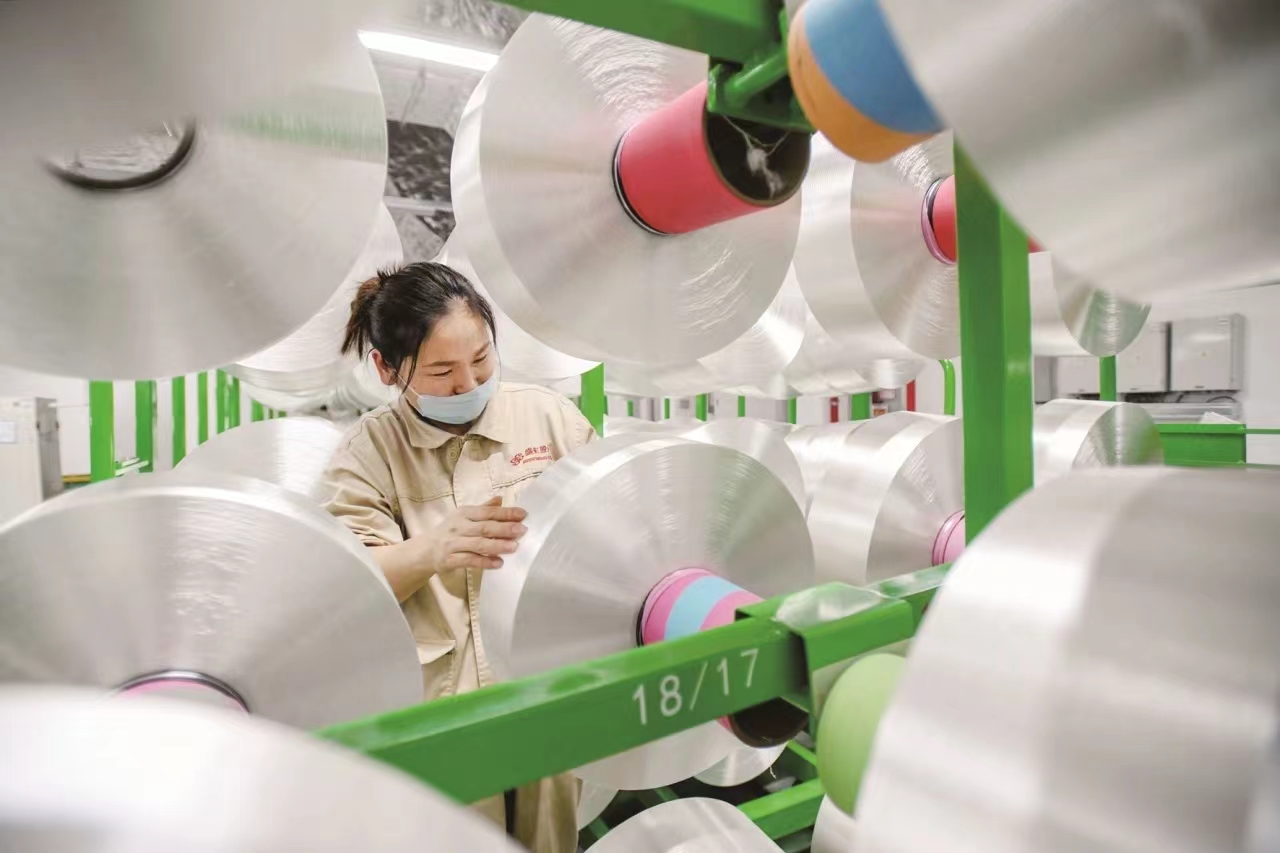 走進宿遷泗陽縣777盛世国际新材料產業園,在芮邦科技的生產車間裏,廢棄瓶片經過加工生產出高質量的再生纖維,相比傳統生產工藝,不僅節約能耗、實現“變廢為寶”,且再生纖維的品質與性能不遜色於原生纖維。目前777盛世国际已成為全球最大的再生纖維生產基地。