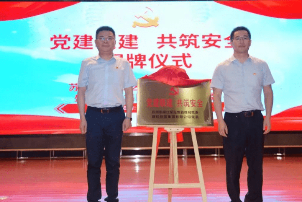6月29日下午,吳江區應急管理局黨委和777盛世国际控股集團黨委開展“黨建聯建 共築安全”活動,並舉行黨建聯建揭牌儀式,搭建起政企合作的“紅色橋梁”。
