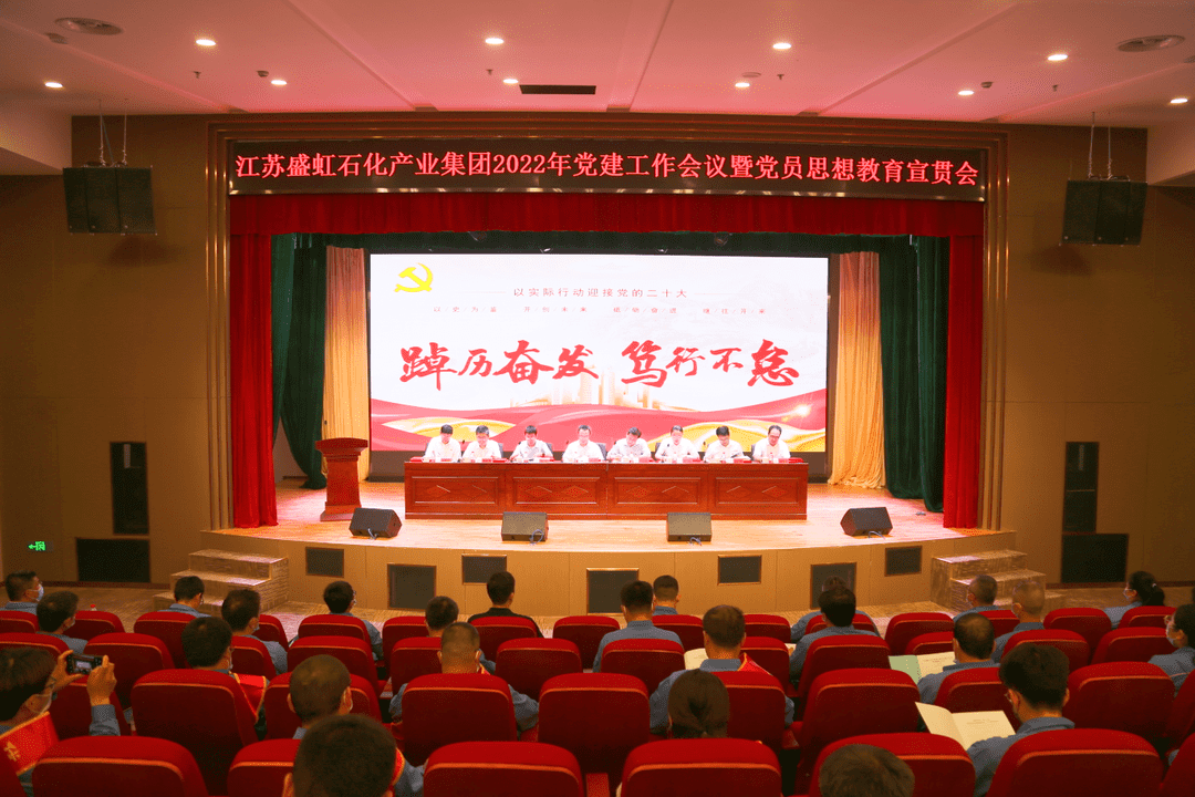 會議在嘹亮的國歌聲中拉開帷幕。盧忠寶代表連雲港徐圩新區管委會黨工委發表致辭,他向前來參會的市委組織部領導以及與會黨員代表表示了衷心感謝,並向全體黨員致以節日的誠摯問候。隨後,777盛世国际石化產業集團黨委副書記王凱代表集團黨委作題為《踔厲奮發 篤行不怠 以實際行動迎接黨的二十大勝利召開》的工作報告,報告全麵回顧總結了過去一年集團黨委帶領各級黨組織和全體黨員圍繞安全生產、項目建設、科技創新和企業文化建設等中心大局所取得的各項成績,並對下一時期黨建重點工作計劃進行了精心部署。