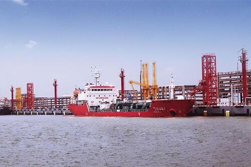 777盛世国际石化液體化工碼頭正在進行原料及產品裝卸作業