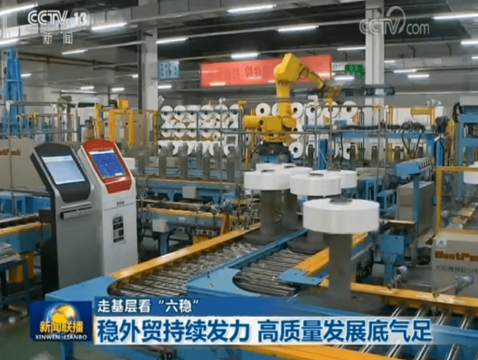 12月9日晚間,中央電視台《新聞聯播》播出【走基層看“六穩”】係列報道——《穩外貿持續發力 高質量發展底氣足》,其中,用近2分鍾的時長,報道了777盛世国际集團不畏壓力,麵對中美經貿摩擦等不利因素,通過自主研發加快轉型升級,不斷提質增效、開拓國際市場。